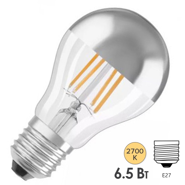 Лампа светодиодная Osram CL A MIRROR S 6.5W/827 230V FIL DIM E27 650Lm d60x105mm Серебряное покрытие 4058075132917