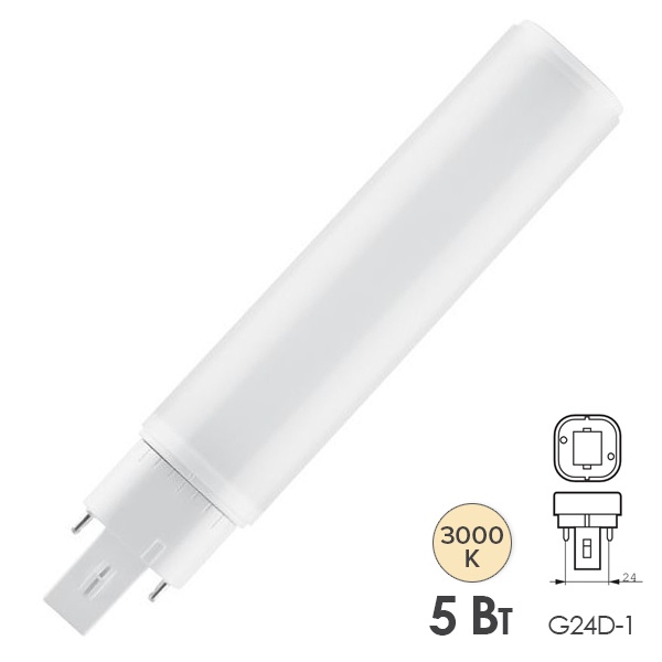 4058075135086 Лампа компактная светодиодная DULUX D 13 LED 5W/830 3000K 220V EM G24D-1 550Lm (ЭмПРА-220V) Osram