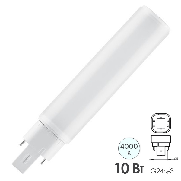 • Лампа компактная светодиодная DULUX D/E 26 LED 10W/840 4000K G24q-3 (ЭПРА-220V) Osram