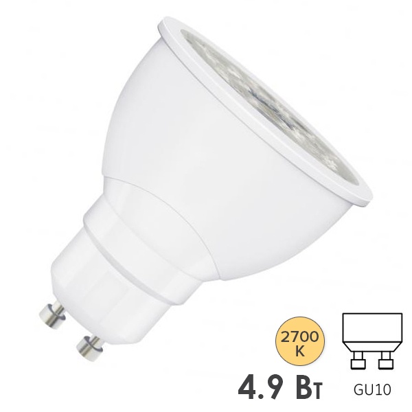 Лампа диммируемая светодиодная LEDVANCE SMART+ PAR16, 350лм, 5Вт (замена 40Вт), 2700К (теплый белый свет). Цоколь GU10, колба PAR16, угол пучка 45°. Исполнение колбы матовое, стекло. Напряжение питания 220-240В. Особенности: ZigBee . Товар сертифицирован.