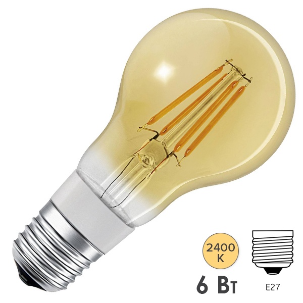 Филаментная, диммируемая Смарт лампа Ледванс с нитевидными светодиодами, теплый свет, мощностью 6 Ватт, с цоколем E27, золотистая колба 4058075208582