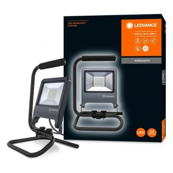 LED прожектор WORKLIGHT переносной, с ручкой Серый LEDVANCE 50Вт 4500 Лм, 4000 К Нейтральный белый свет