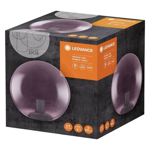 Стеклянный настольный светильник для внутреннего освещения, винтажное исполнение, с патроном E27, розовый плафон 4058075217485