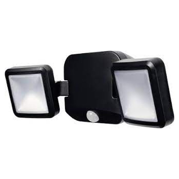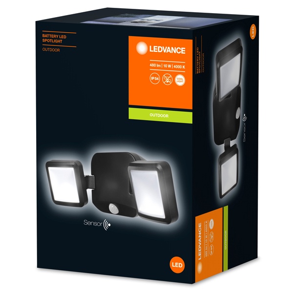 Черный компактный двойной светодиодный прожектор на батарейках 4*D с датчиком движения и освещености, мощностью 10 Вт. 4058075227361