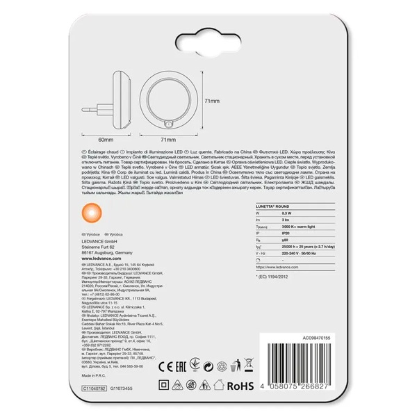 Ночник с датчиком освещености, питанием от бытовой розетки, Ледванс 4058075266827