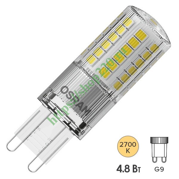 Светодиодная капсульная лампочка Осрам, мощностью 4,8 Ватт с цоколем G9, теплый свет 4058075271845