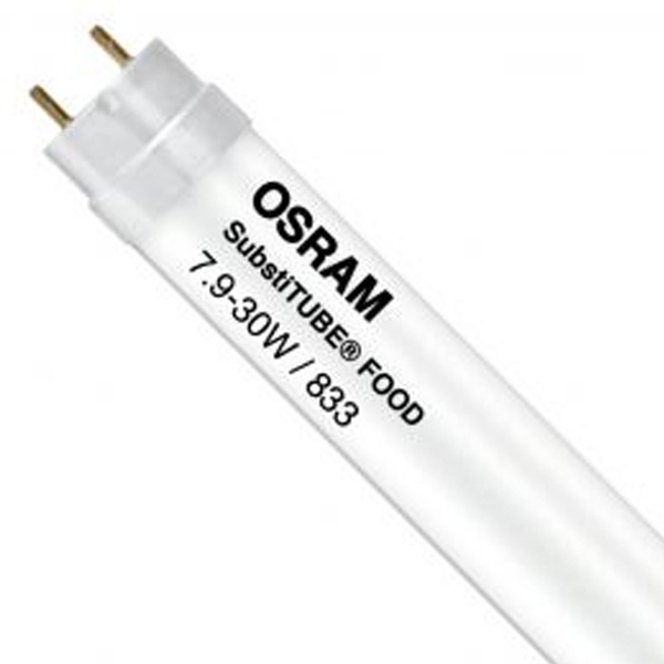 Лампа светодиодная OSRAM SubstiTUBE T8, 750лм, 7,9Вт (замена 30Вт), 3300К (теплый белый свет). Цоколь G13, колба T8, угол пучка 190°. Исполнение колбы матовое, стекло. Напряжение питания 220-240В. Особенности: ЭмПРА; СТАРТЕР В КОМПЛЕКТЕ. Товар сертифицирован.