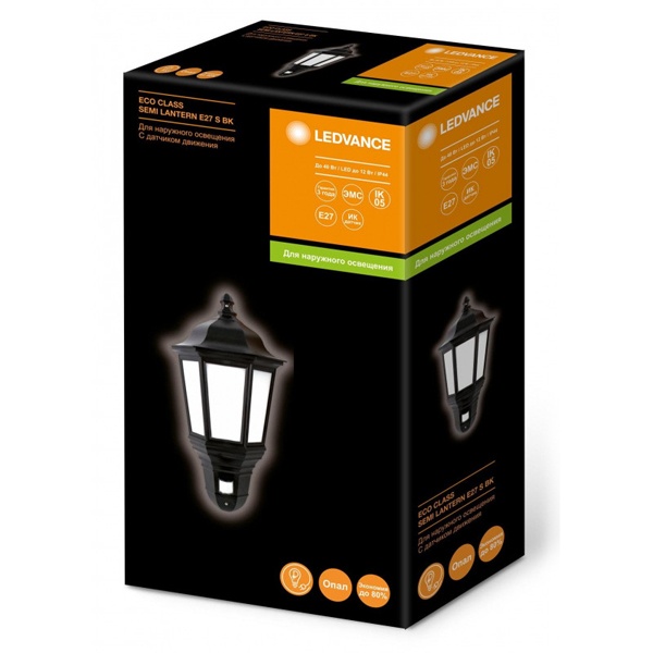 Это тот самый «полуфонарь» на стену, который ставят один раз и потом просто забывают о нем. Ledvance ECOClass SemiLantern в черном корпусе выглядит аккуратно, а встроенный датчик движения реально экономит время и электричество: свет появляется именно тогда, когда вы подходите к двери или проходите вдоль фасада.