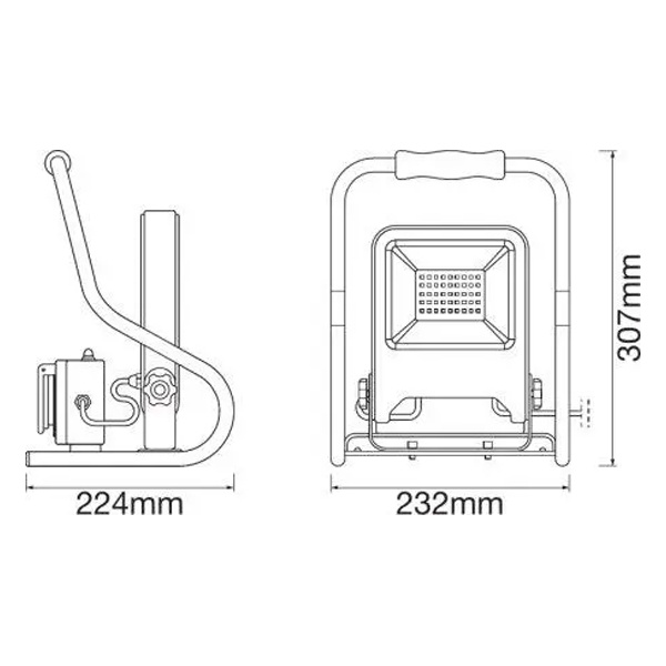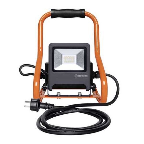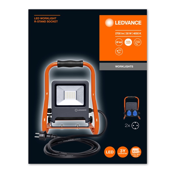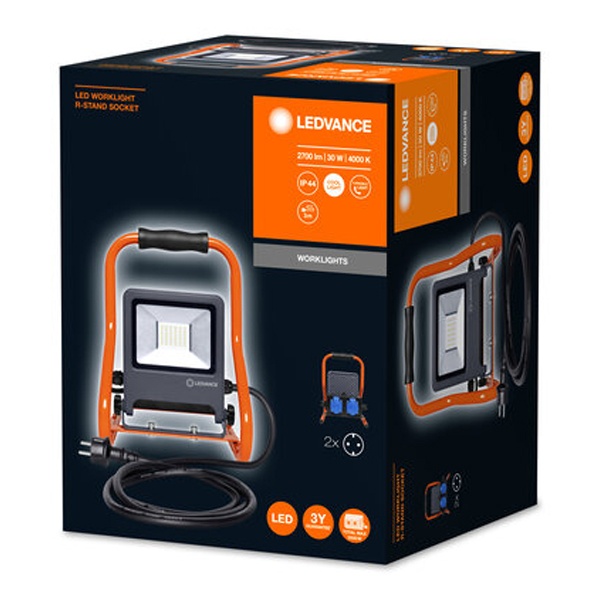 Компактный переносной LED прожектор на подставке с двумя розетками, мощностью 30 Вт холодного белого света, Ледванс. 4058075321328