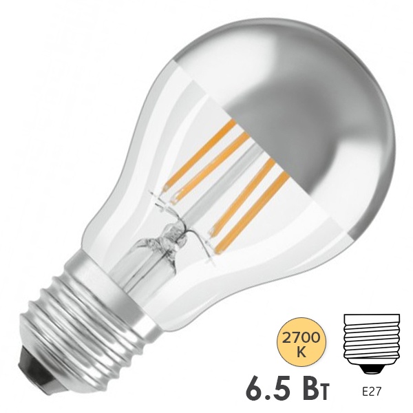Лампочка Осрам с нитевидными светодиодами, мощностью 6,5 Ватт, с цоколем E27, теплый свет, с зеркальным отражателем