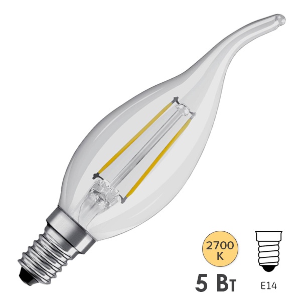 • Лампа филаментная светодиодная свеча на ветру Osram Retrofit BA 40 DIM 5W/827 2700К 230V E14 470Lm
