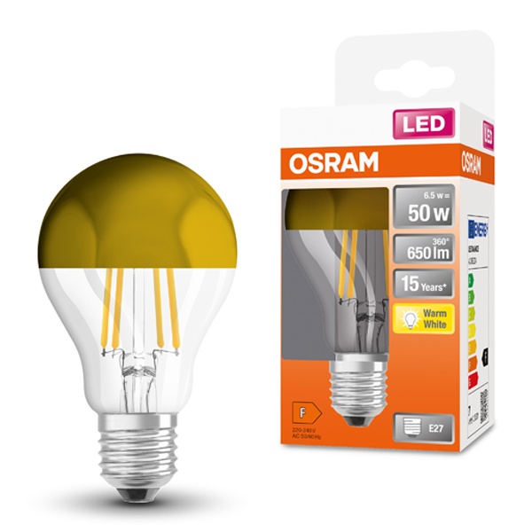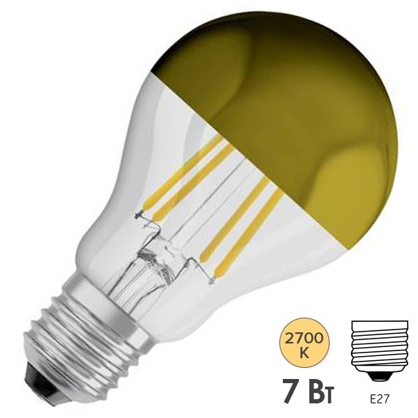 • Лампа светодиодная Osram CL A MIRROR G 7W/827 230V FIL E27 650Lm d60x105mm золотое покрытие