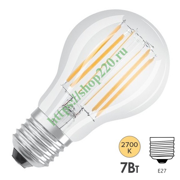 Лампа филаментная светодиодная Osram PARATHOM CL A60 7W (60W) 827 220-240V DIM E27 240° FIL 806lm
