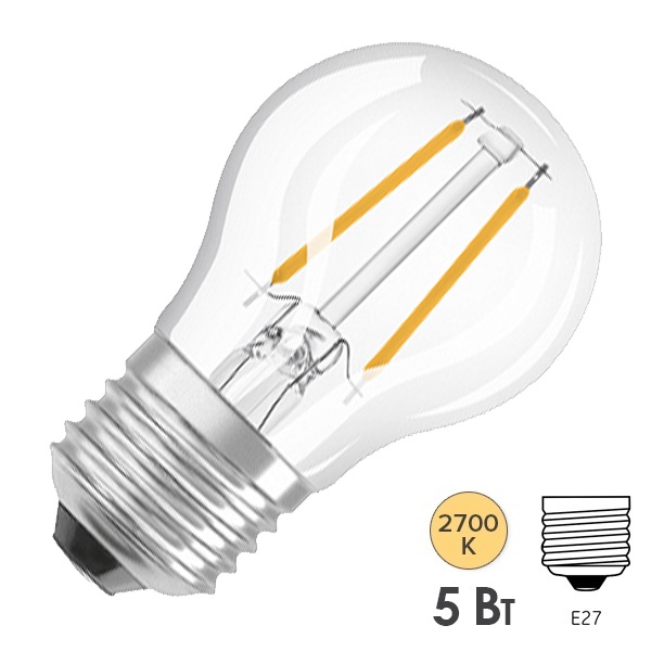 Диммируемая лампочка Осрам с нитевидными светодиодами, c цоколем E27, мощностью 5 Ватт, теплый свет 4058075439634