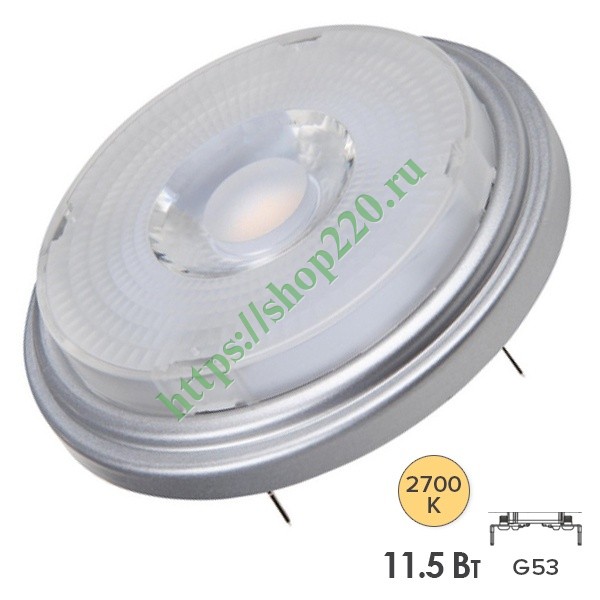 Лампа светодиодная Osram LED PAR AR111 7540 11,5W/927 12V 40° G53 800lm DIM 45000h 4058075448841
