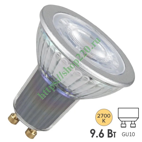 Лампа светодиодная Osram PARATHOM PAR16 100 36° 9.6W/827 DIM GU10 230V 750Lm d50x58mm