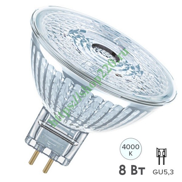 Низковольтная светодиодная лампа акцентного освещения Осрам MR16, мощностью 8 Ватт с цоколем GU5,3, нейтральный белый свет 4058075449367