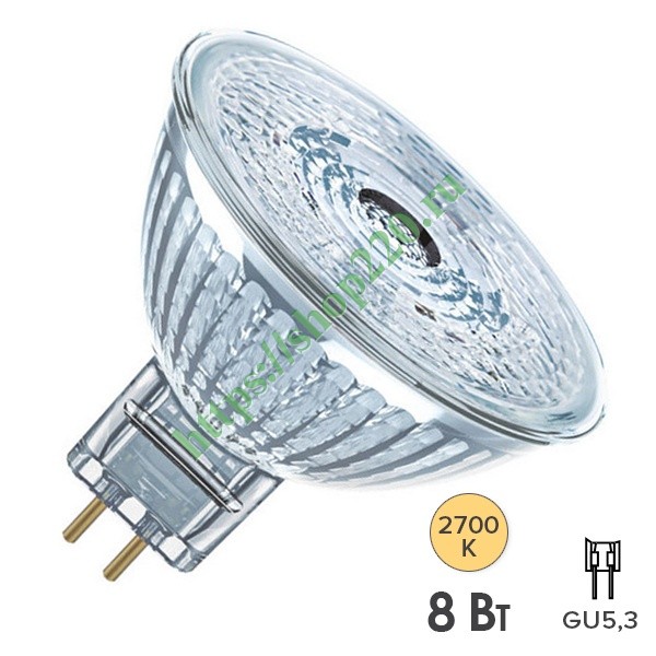 Низковольтная светодиодная лампа акцентного освещения Осрам MR16, мощностью 8 Ватт с цоколем GU5,3, теплый свет 4058075449404