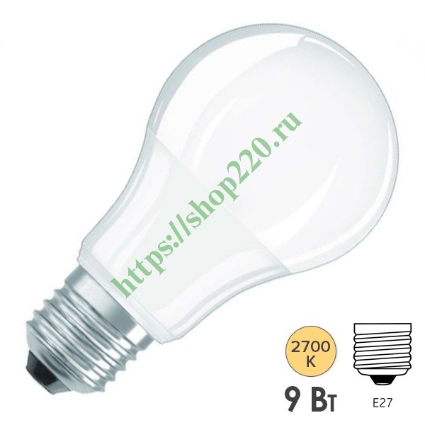 Светодиодная диммируемая лампочка Осрам мощностью 9 Ватт, с цоколем E27, теплый свет, матовая колба 4058075462571