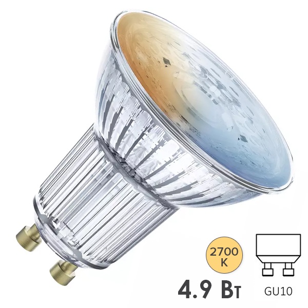 Светодиодная, диммируемая Смарт лампа Ледванс акцентного освещения (45°), теплый свет, мощностью 4,9 Ватт, с цоколем GU10 4058075485297