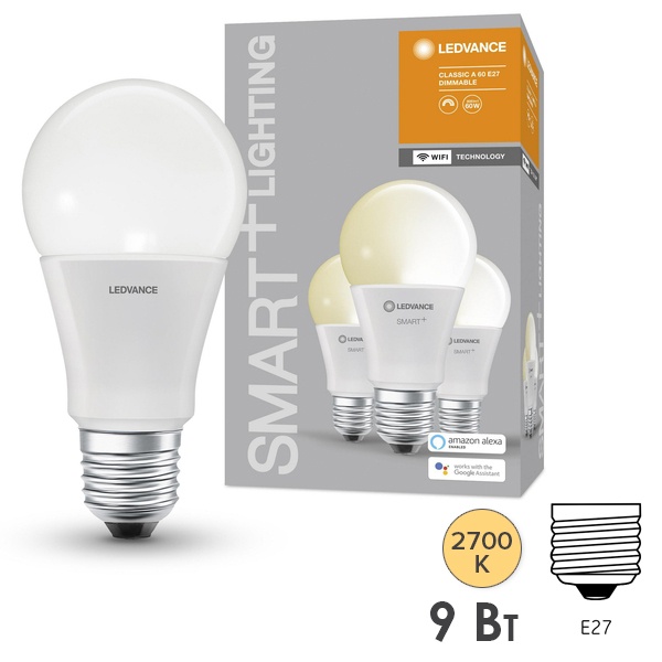 4058075485716 Светодиодная лампа Ledvance SMART+ WiFi Classic DIM 9W (замена 60W) 2700K E27 упаковка 3шт.