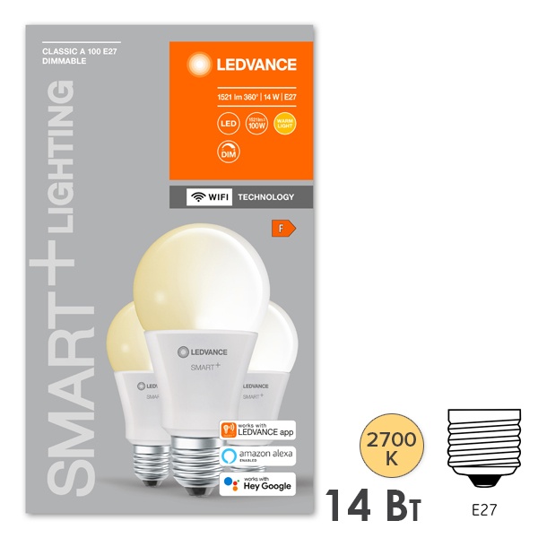 Светодиодная лампа SMART+ WiFi Classic DIM 14W (замена 100W) 2700K E27 упаковка 3шт. Ledvance 4058075485839