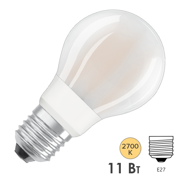 Филаментная, диммируемая Смарт лампа груша Ледванс с нитевидными светодиодами, теплый свет, мощностью 11 Ватт, с цоколем E27, матовая колба 4058075486089