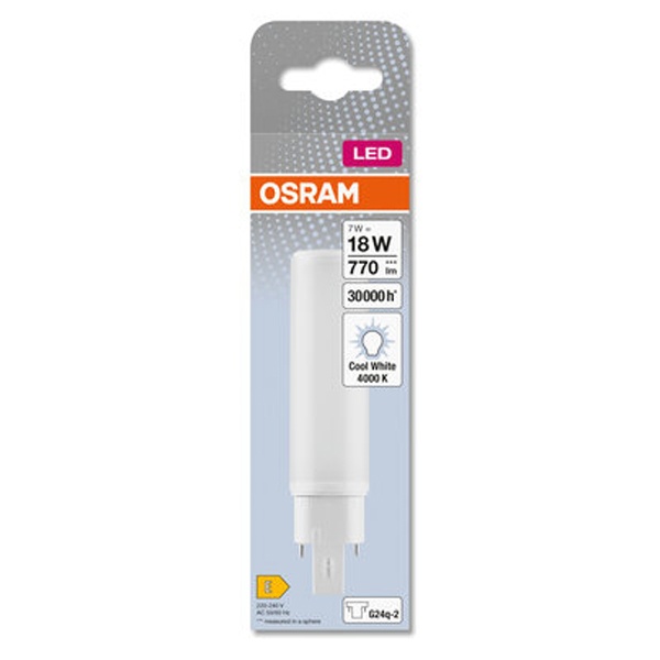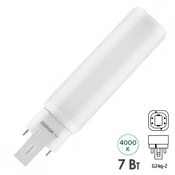 Лампа светодиодная OSRAM LED Dulux Special, 770лм, 7Вт (замена 18Вт), 4000К (нейтральный белый свет). Цоколь G24q-2, колба Special, угол пучка 120°. Исполнение колбы прозрачное, пластик. Напряжение питания 220-240В. Товар сертифицирован.