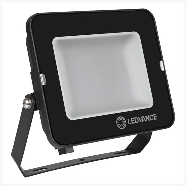 Черный влагозащищенный LED прожектор Ледванс мощностью 50Вт и световый потоком 5000 лм холодного дневного света, с монтажной скобой и кабелем длиной 1000мм. 4058075574939