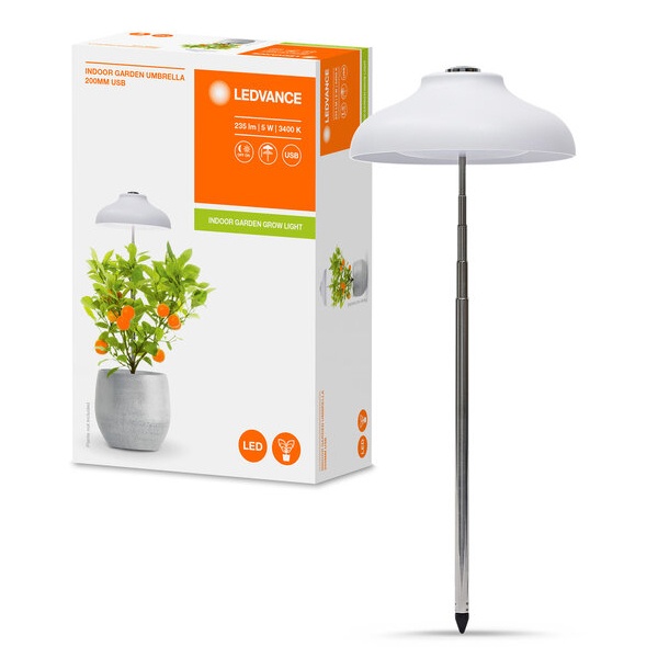 4058075576155 Светильник светодиодный для горшечных растений Indoor Garden Umbrella 200 USB WT 5W 3400K 235Lm IP20