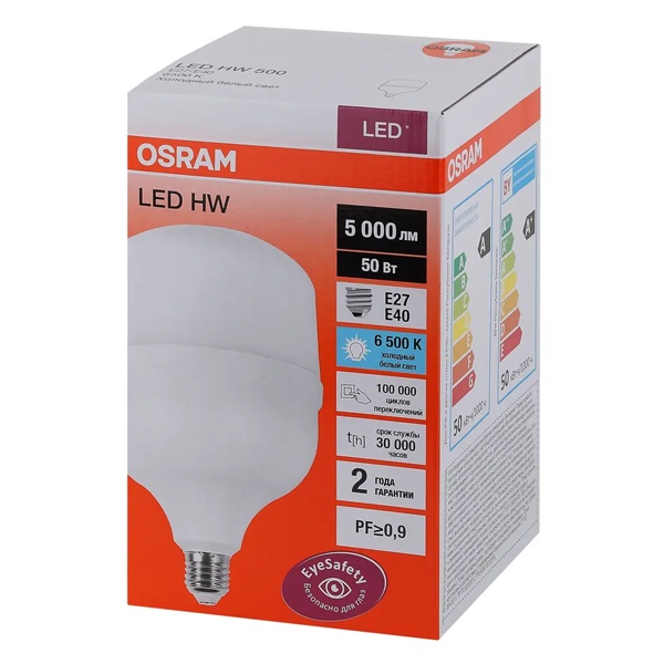 Светодиодная, промышленная лампа Осрам мощностью 50 Ватт, с цоколем E27, холодный дневной свет 4058075576872