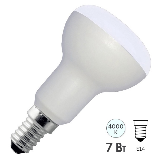 Лампа светодиодная OSRAM LED Value R, 560лм, 7Вт (замена 60Вт), 4000К (нейтральный белый свет). Цоколь E14, колба R, угол пучка 120°. Исполнение колбы матовое, пластик. Напряжение питания 220-240В. Товар сертифицирован.