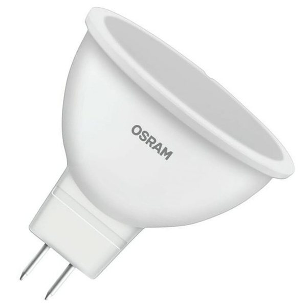 Лампа светодиодная OSRAM LED Value MR16, 400лм, 5Вт (замена 35Вт), 6500К (холодный белый свет). Цоколь GU5.3, колба MR16. Исполнение колбы матовое, пластик. Напряжение питания 220…240В. Особенности: паковка по 5шт.