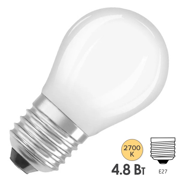 Светодиодная лампа шарик Osram PARATHOM CL P 4,8W (40W) 2700K E27 FR диммируемая филаментная 4058075590779