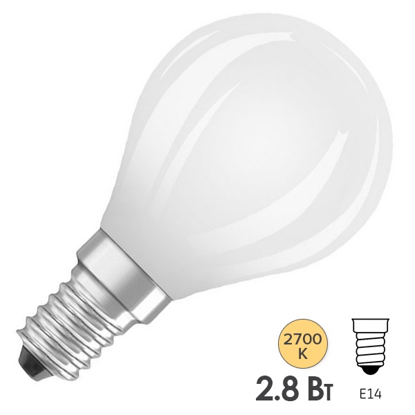 Диммируемая лампочка Осрам с нитевидными светодиодами, c цоколем E14, мощностью 2,8 Ватт, теплый свет, матовая колба 4058075591134