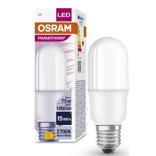 Лампа светодиодная OSRAM Parathom Stick, 1050лм, 9Вт (замена 75 Вт), 2700К (теплый белый свет). Цоколь E27,колба Stick, угол пучка 200°. Исполнение колбы матовое, пластик. Напряжение питания 220-240В. Товар сертифицирован