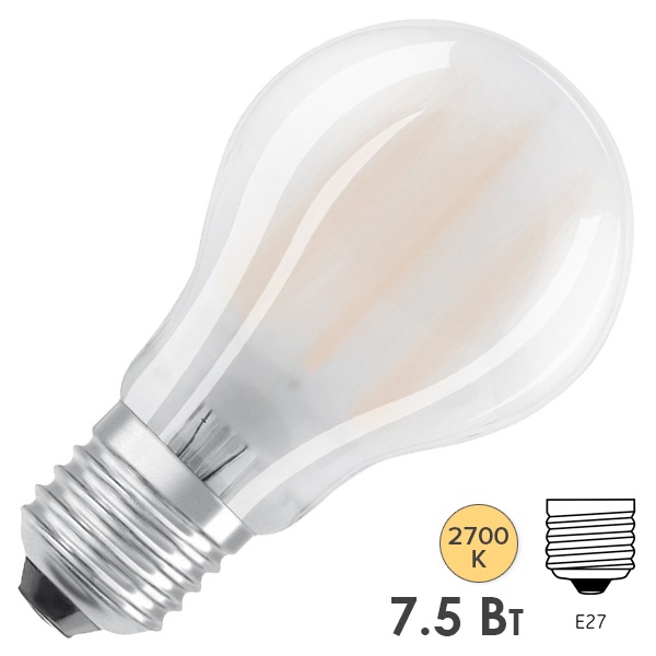 Энергосберегающая диммируемая LED лампочка с нитевидными светодиодами Груша с цоколем E27, мощностью 7,5 Ватт, теплый свет, матовая колба 4058075602618