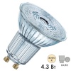 Лампа светодиодная OSRAM Parathom PAR16, 350лм, 4,3Вт (замена 50 Вт), 3000К (теплый белый свет). Цоколь GU10,колба PAR16, угол пучка 36°. Исполнение колбы прозрачное, стекло. Напряжение питания 220-240В. Товар сертифицирован