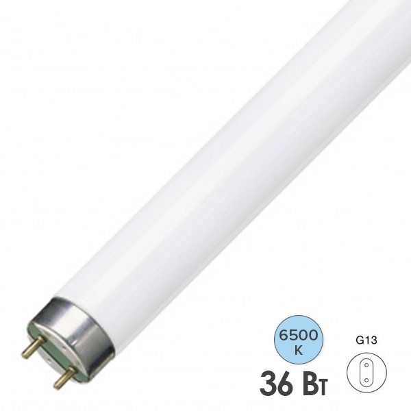 Двухцокольная лампа-трубка люминесцентная ЛЛ Т8 мощностью 36 Вт с цоколем G13 холодного света для ЭПРА 4058075692992
