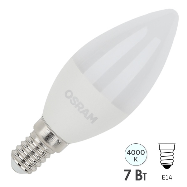 Энергосберегающая LED лампочка свеча, мощностью 7 Ватт, с цоколем E14 (миньон), нейтральный белый свет 4058075696419