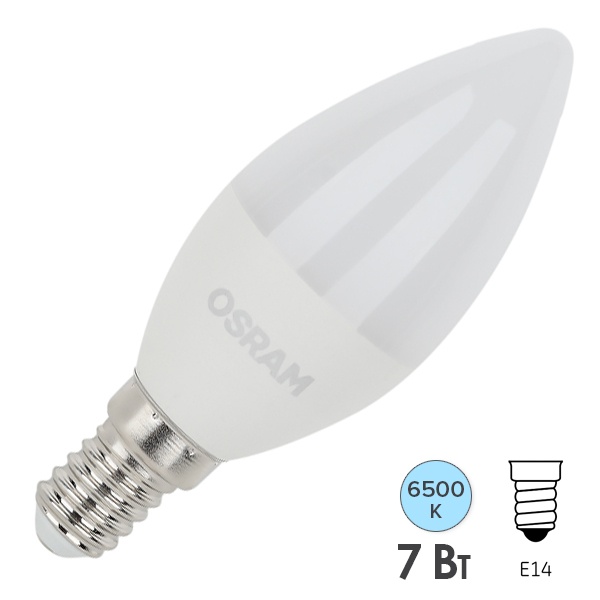 Энергосберегающая LED лампочка свеча, мощностью 7 Ватт, с цоколем E14 (миньон), холодный свет 4058075696532