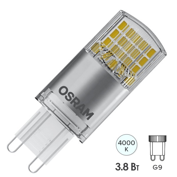 • Лампа светодиодная Osram LED PIN 40 3,8W/840 470lm 220V G9 белый свет