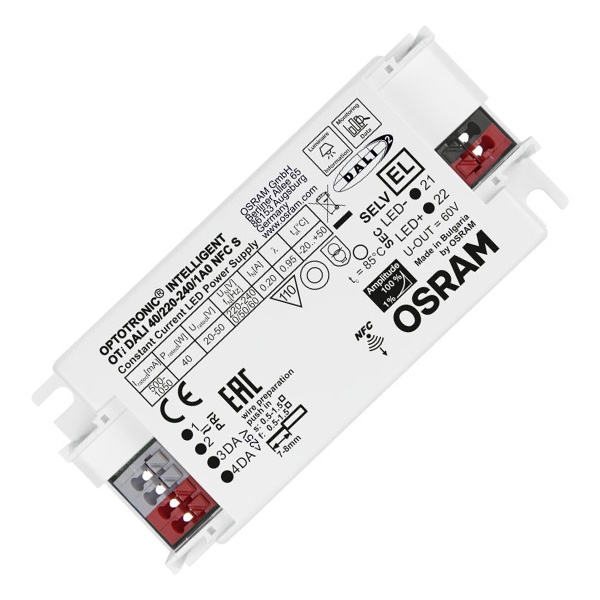 4062172110105 LED драйвер Osram OTi DALI 40/220…240/1A0 D NFC S LEDset/Prog 40W 500-1050мА 97x40x30mm