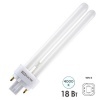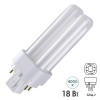 Компактная люминесцентная лампа неинтегрированная OSRAM DULUX D/E 18Вт с штырьковым одиночным четырехконтактным цоколем G24Q-2 и двухоборотными колбами. Лицензиатом торговой марки OSRAM в общем освещении является компания LEDVANCE.