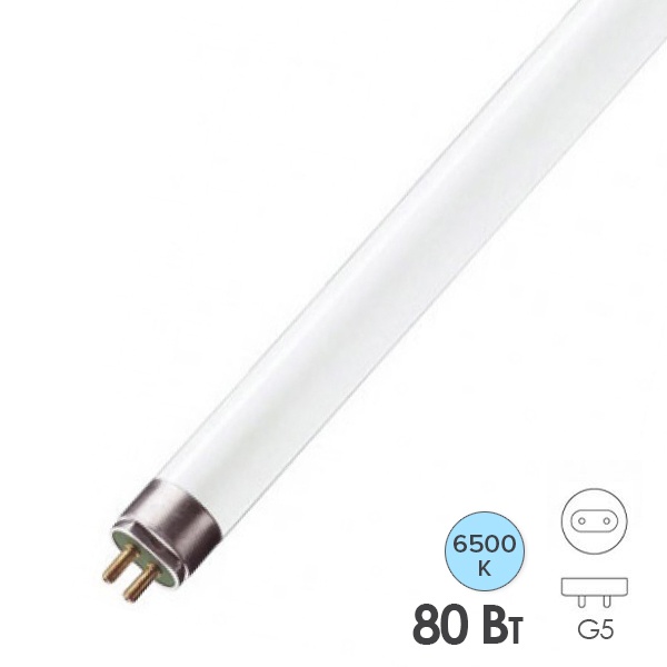 Двухцокольная лампа-трубка люминесцентная ЛЛ Т5 мощностью 80 Вт с цоколем G5 холодного света для ЭПРА 4099854129131