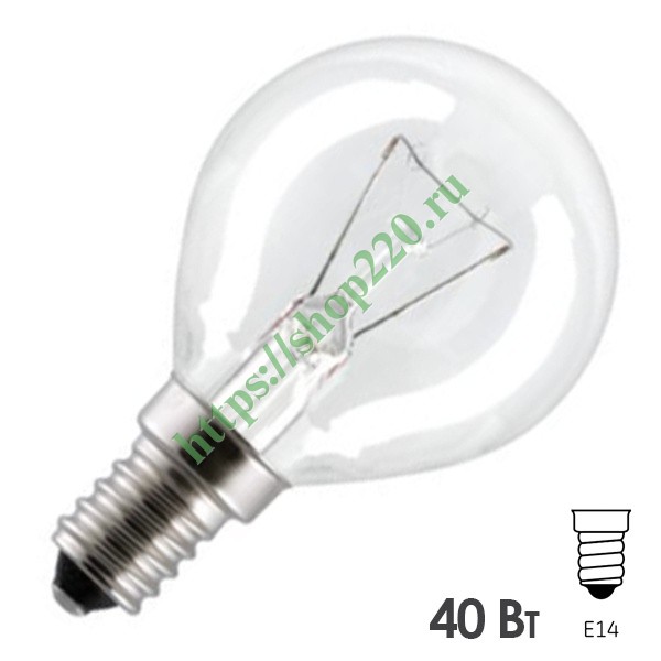 Обычная вольфрамовая лампа для бытовой техники мощностью 40 Вт на 220 Вольт с цоколем E14 12462