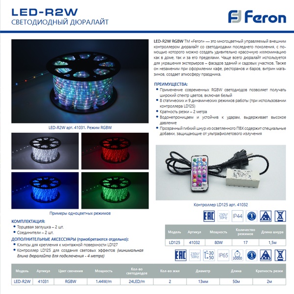 Характеристики:- Минимальная длина дюралайта для подключения: 4 метра