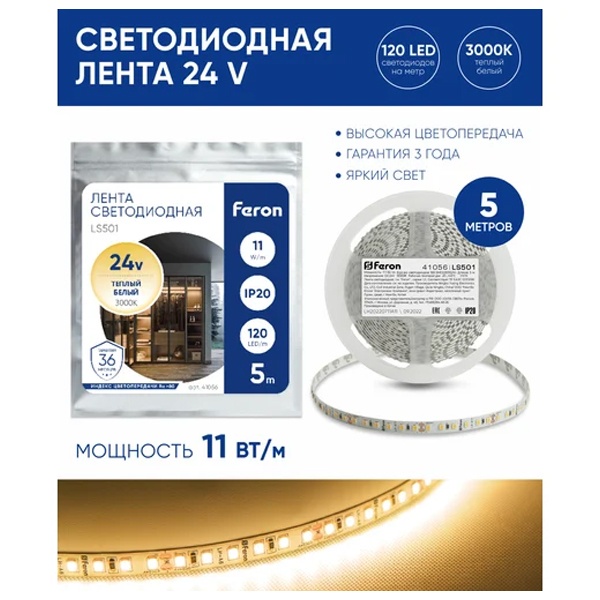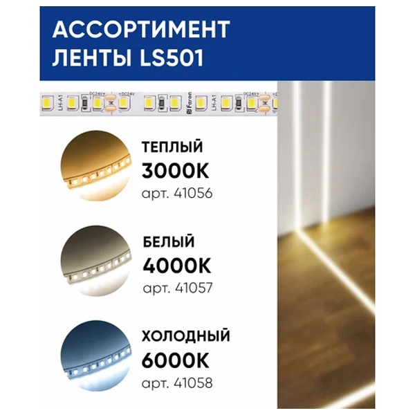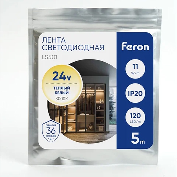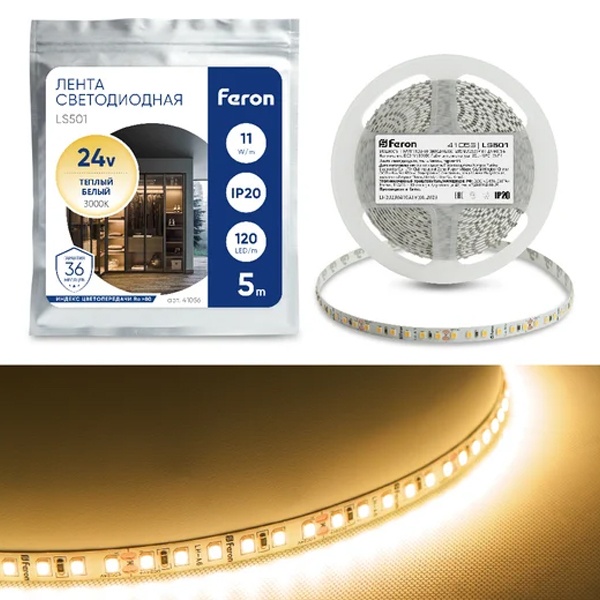 Светодиодная лента LS501 24 В широко используется в интерьере для создания самых эффективных и в тоже время рациональных решений, к которым относятся скрытая подсветка ниш и потолков, создание эффекта "Линии света", подсветка ступеней, перил, полов, подсветка мебели, гардеробов и рабочих поверхностей.