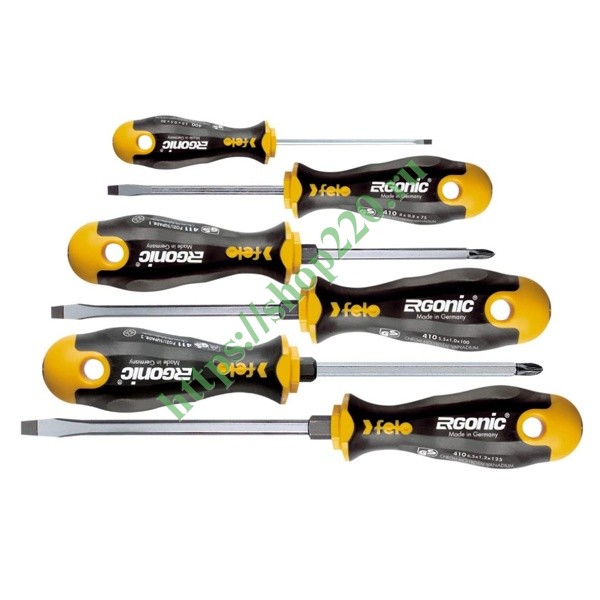 41096248 Набор отверток Felo Ergonic SL/PZ 6 штук серии 400/410/411 с шестигранным основанием