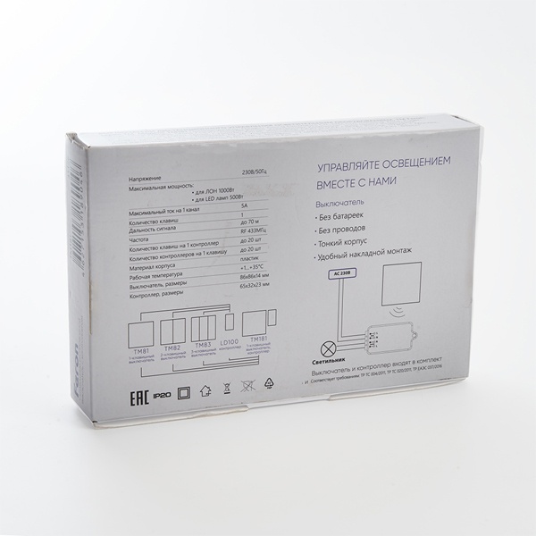 Дистанционный выключатель для светильников (дистанционный выключатель), FERON TM181, IP20, 230V, 1200Вт, 500Вт цвет белый, 86*86*14мм